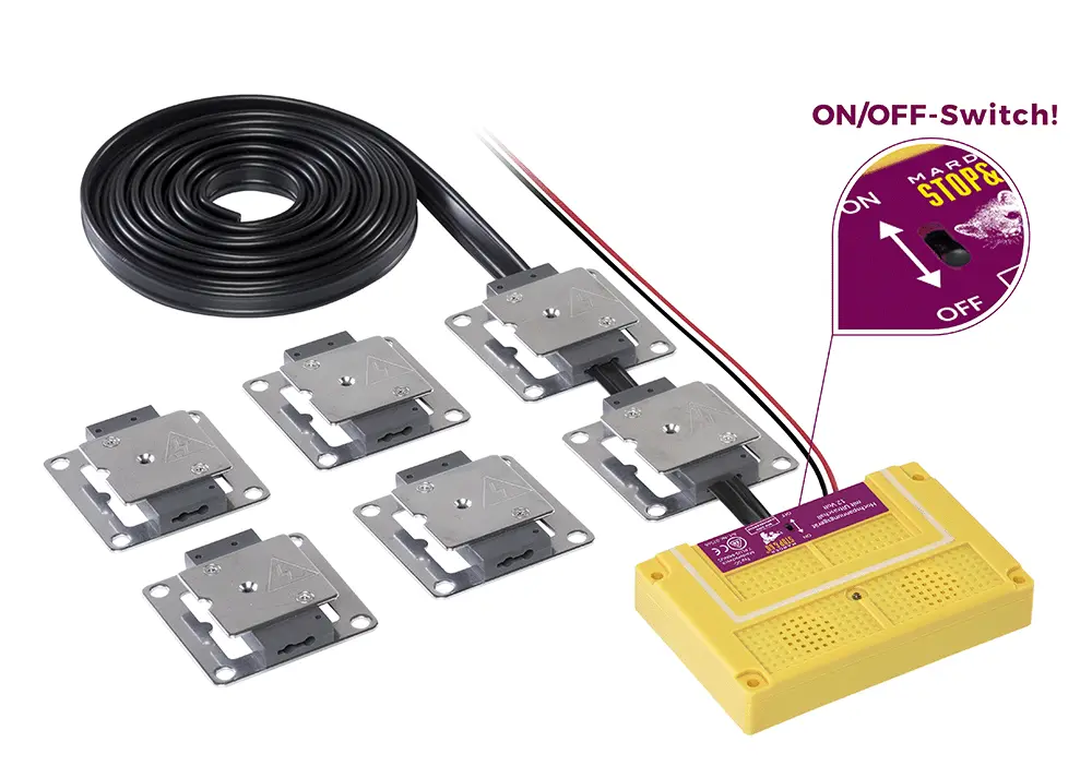 Mit der K & K 9900 ist eine effektive Hochspannungs-Marderabwehr. Die Anlage arbeitet nach dem Prinzip „Schutz nur, wenn Schutz benötigt wird“. Dank der Aktivierungssensoren wird die Hochspannung im Bruchteil einer Sekunde nur bei Berührung der Bürstenkontakte aufgebaut – so bleibt der Schutz tierfreundlich und trotzdem hochwirksam.