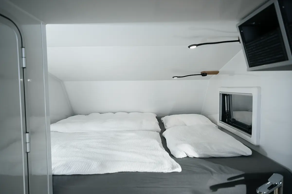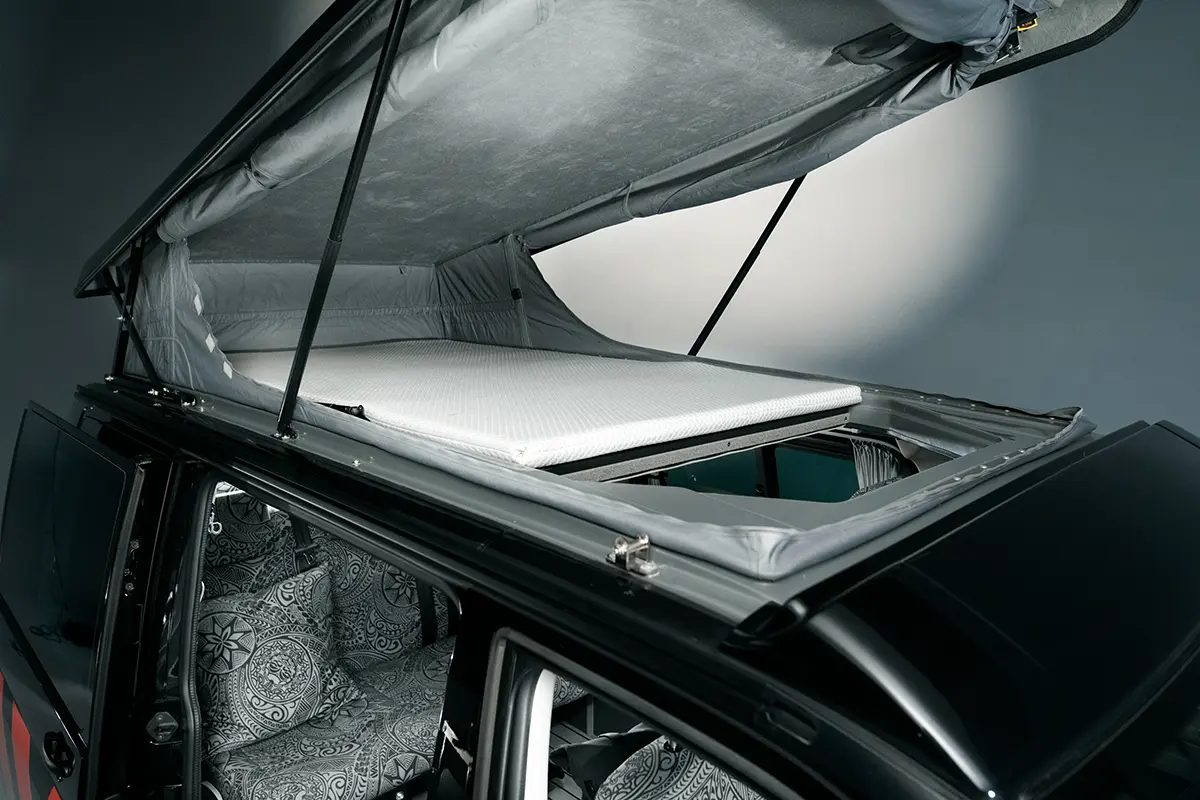 Zusätzlich gibt es zwei Schlafplätze im Open-Sky-Dach, das bei Bedarf aufgestellt werden kann.